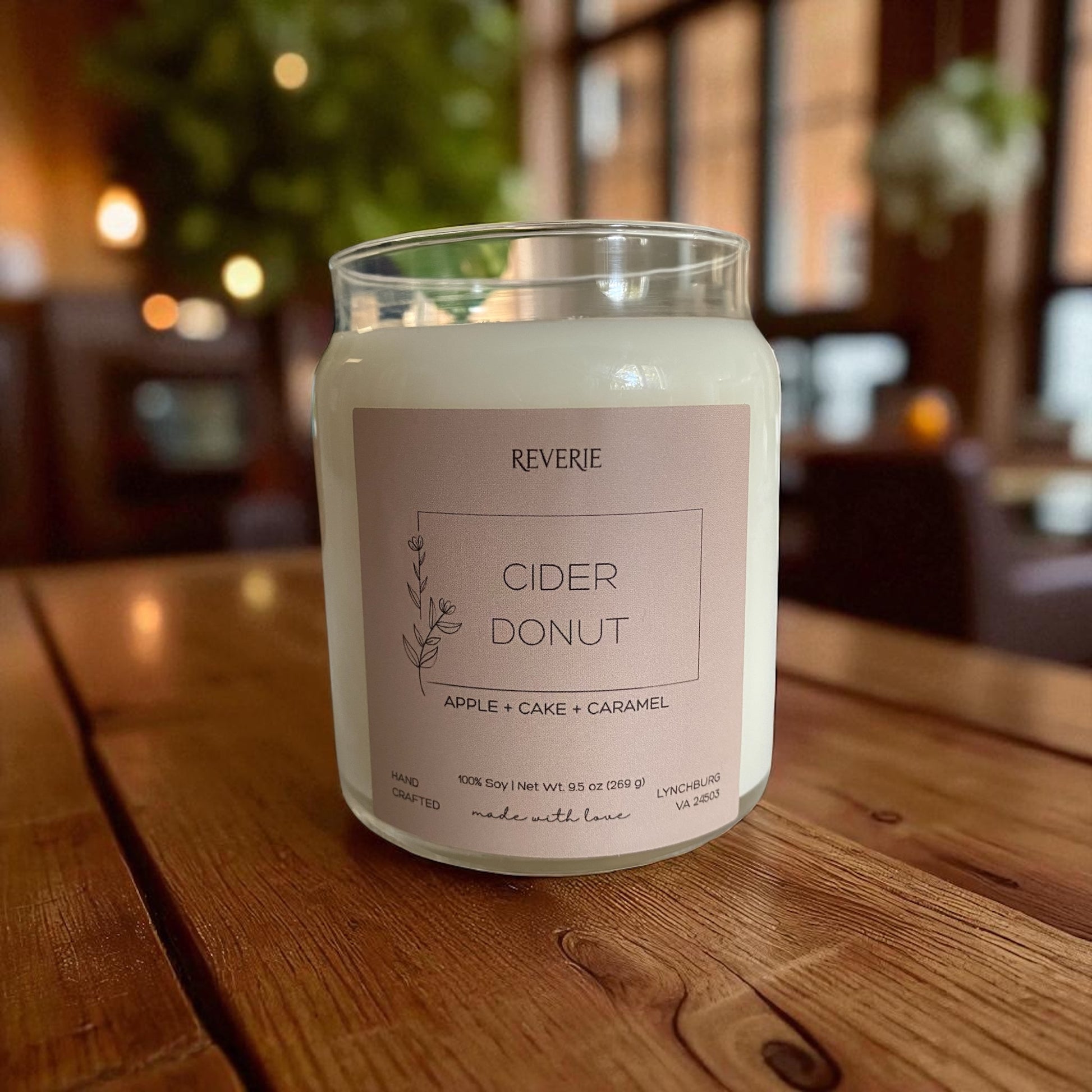 Delight in the irresistible scent of our Cider Donut candle, blending notes of apple, cake, and caramel for a classic sweet treat—a mouthwatering blend of freshly fried donut rings infused with a hint of warm apple cider and topped with cinnamon-sugar.